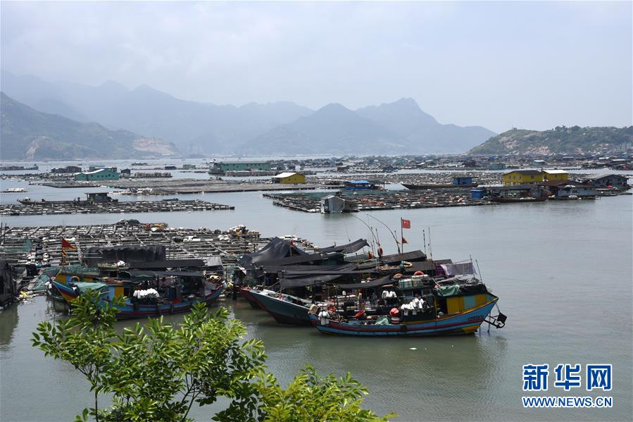 福建寧德三都澳斗姆島附近的魚排(5月29日攝)。