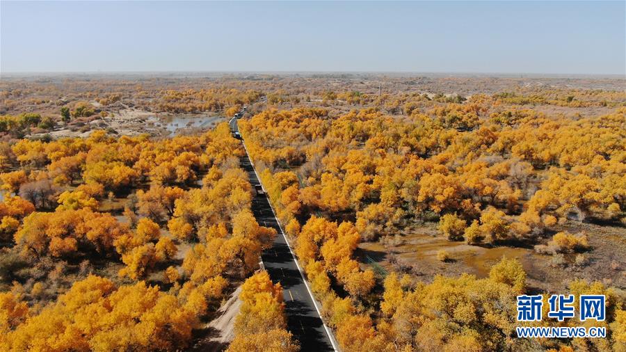 新疆尉犁縣胡楊林深處的一條小路(10月25日攝)。 10月中下旬,靜靜的塔里木河中下游一片金黃。胡楊深處,條條小路蜿蜒綿長通向遠方,引人入勝。 塔里木河是中國最長的內(nèi)陸河,這一區(qū)域原始胡楊林分布較為集中。隨著塔里木河連續(xù)19次向下游生態(tài)輸水,為胡楊林“解渴”,塔河兩岸生態(tài)得到明顯改善,沙地面積逐年減少。 新華社記者趙戈攝