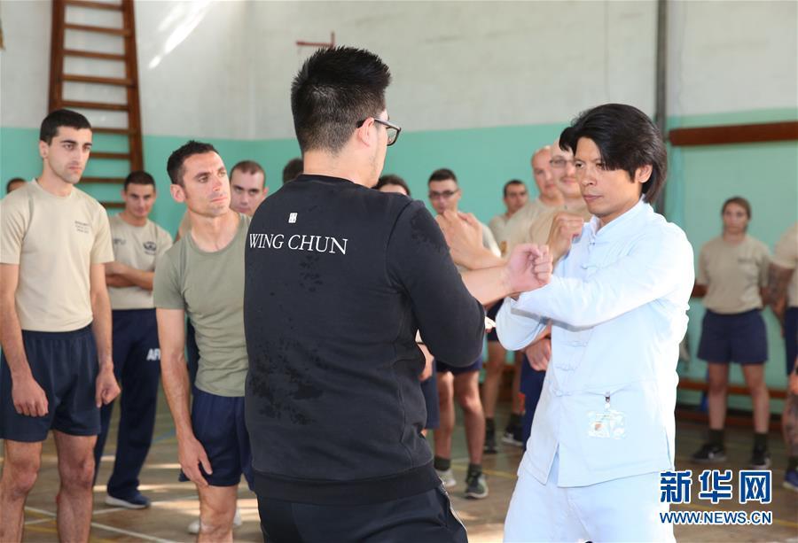 11月13日,在馬耳他首都瓦萊塔,鄭祖杰(前右)向馬耳他士兵展示詠春拳。 當(dāng)日,中國國家級非物質(zhì)文化遺產(chǎn)詠春拳代表性傳承人鄭祖杰走進(jìn)馬耳他武裝部隊(duì),向官兵展示詠春拳。這一活動(dòng)是馬耳他中國文化中心與馬耳他武術(shù)協(xié)會(huì)合辦的詠春拳系列展示活動(dòng)之一。 新華社記者 袁韻 攝