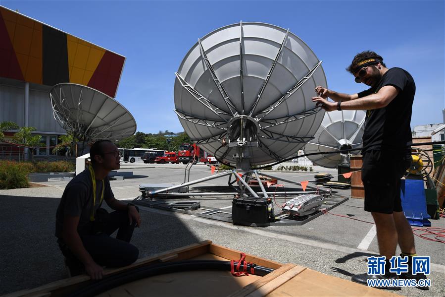11月13日,工作人員在巴布亞新幾內(nèi)亞首都莫爾茲比港的APEC國(guó)際媒體中心安裝衛(wèi)星設(shè)備。 新華社記者呂小煒攝