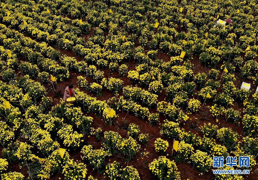 11月14日,在河南省內(nèi)鄉(xiāng)縣乍曲鎮(zhèn)水溝村千畝酈邑貢菊基地,農(nóng)戶在采摘菊花(無人機(jī)拍攝)。 近年來,河南省內(nèi)鄉(xiāng)縣依托資源優(yōu)勢,把發(fā)展特色農(nóng)業(yè)作為精準(zhǔn)扶貧的重要舉措,采取“公司+合作社+農(nóng)戶”的方式,招引農(nóng)業(yè)龍頭企業(yè)發(fā)展菊花種植產(chǎn)業(yè),把菊花加工成茶飲、藥材等高附加值產(chǎn)品,累計(jì)帶動(dòng)150余戶貧困戶就業(yè)增收。 新華社記者 李安 攝