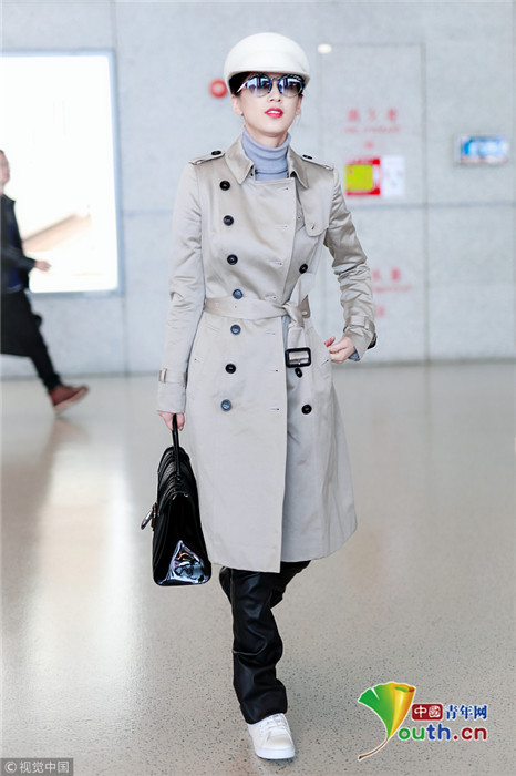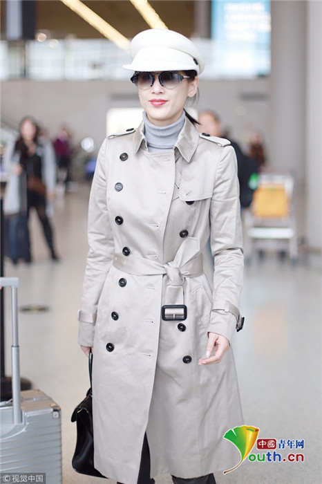 2018年11月14日,黃圣依現(xiàn)身機(jī)場(chǎng),從上海飛往北京。她頭戴白色帽子身穿白色大衣超時(shí)髦,展露迷人微笑,手插衣兜秀無(wú)敵氣場(chǎng)。
