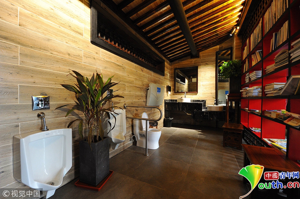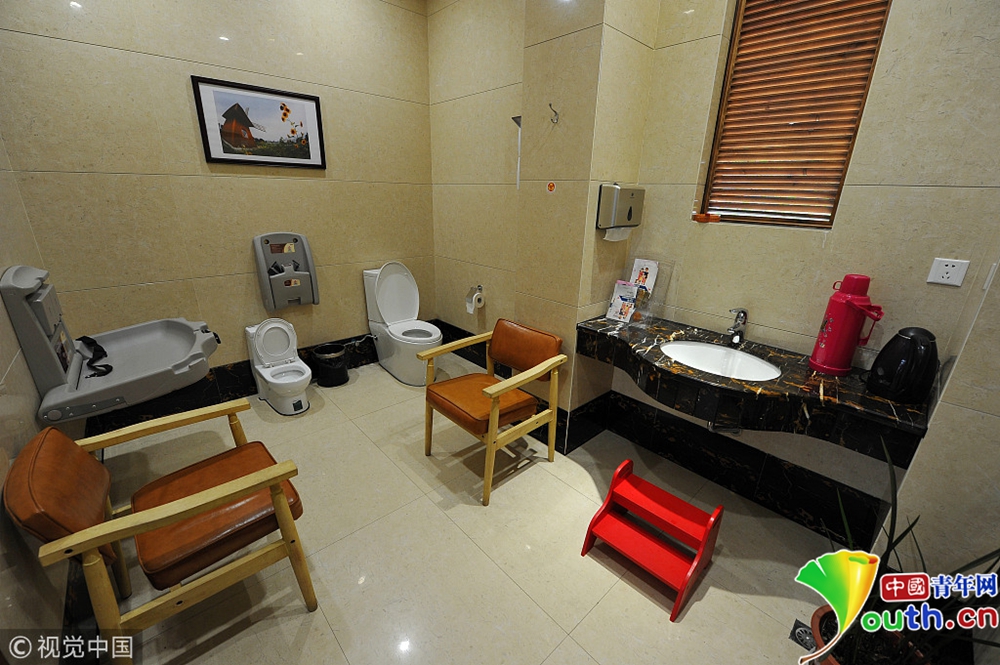 還設(shè)有第三衛(wèi)生間,是專為殘疾人、以及帶著小孩的父母們提供的一個(gè)私密空間。免費(fèi)上這樣超豪華、且復(fù)古又特有文藝范兒的公廁,能讓人感受到一種如“家”般的舒適,像是進(jìn)了五星級(jí)酒店似的。