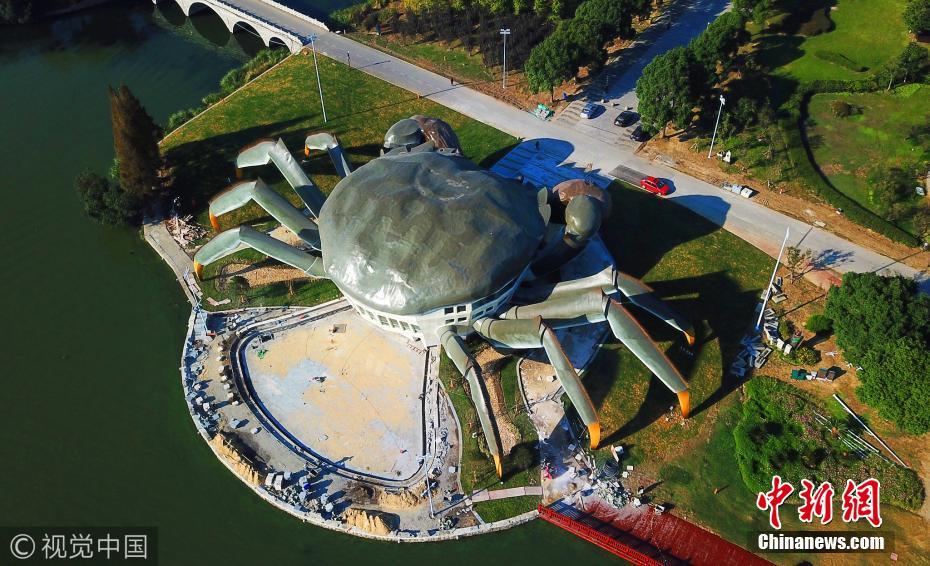 據(jù)了解,這是建造中的大閘蟹生態(tài)館,預計未來將在大閘蟹的白肚內(nèi)容納三層空間,集休閑、娛樂,以及有關大閘蟹體驗于一體的設施。圖片來源:視覺中國