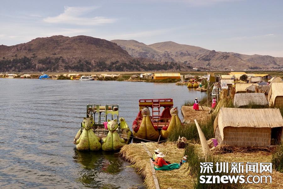 這些漂來漂去的“小島”并非陸地,而是用當?shù)爻霎a(chǎn)的香蒲草捆扎而成的。香蒲草是多年生草本植物,高達2米,葉子細長,可以編織席子、蒲包。厚厚的香蒲草草堆鋪在一起,浮力很大,烏羅人就在上面用香蒲蓋起簡陋的小屋。李仁奇 攝