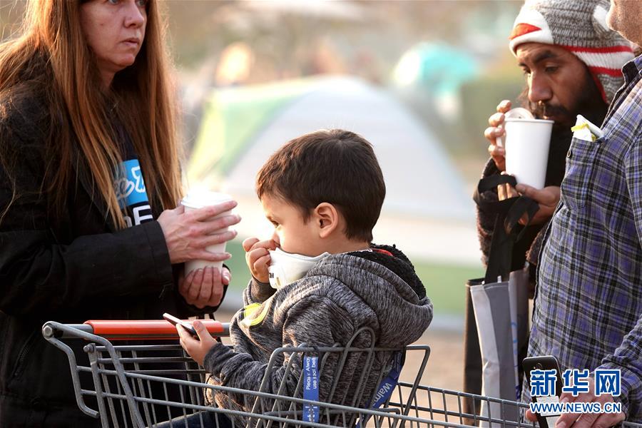 11月18日,在美國加利福尼亞州比尤特縣奇科,災民在沃爾瑪停車場暫居。 新華社記者吳曉凌攝