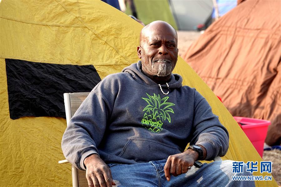 11月18日,在美國加利福尼亞州比尤特縣奇科,災(zāi)民在沃爾瑪停車場(chǎng)搭起帳篷暫居。 新華社記者吳曉凌攝