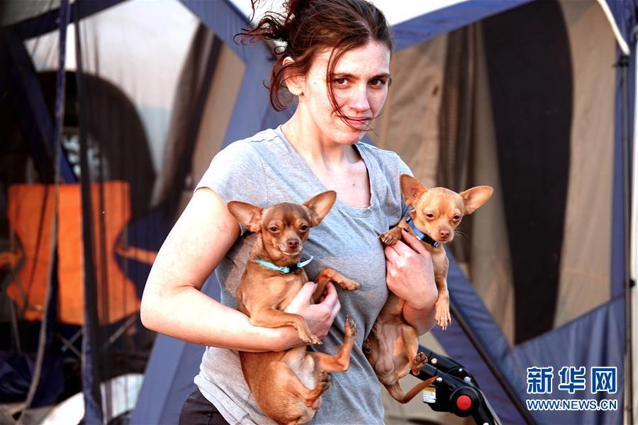 11月18日,在美國加利福尼亞州比尤特縣奇科,災(zāi)民在沃爾瑪停車場搭起帳篷暫居。 新華社記者吳曉凌攝