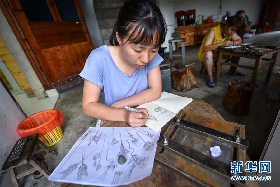 龍懂陽的弟弟龍?zhí)栆彩倾y飾工藝傳人。和哥哥不同,弟弟主打的是銀飾文化體驗游,用自家傳統(tǒng)苗寨開設民宿,游客在此居住的同時,還能學習體驗銀飾品制作。每年暑期一到,家長孩子絡繹不絕。新客源、新銷路、新模式帶動雷山縣銀飾業(yè)不斷發(fā)展壯大,成為脫貧攻堅的重要產業(yè)。2017年,雷山縣控拜、麻料、烏高三個村銀飾品及相關產業(yè)銷售額超過1.5億元,吸引很多外出打工的年輕人回家創(chuàng)業(yè)。苗寨鍛銀聲在綠水青山間響遍千戶,也漸漸走出大山,聲名遠播。新華社記者 李芒茫 攝