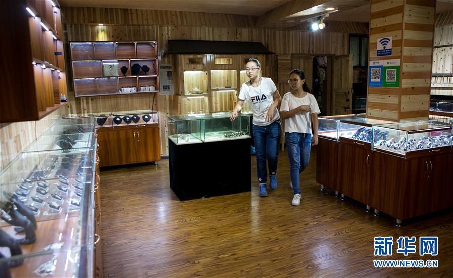 8月3日,前來體驗銀飾制作的青少年參觀龍?zhí)柕你y飾陳列展臺。