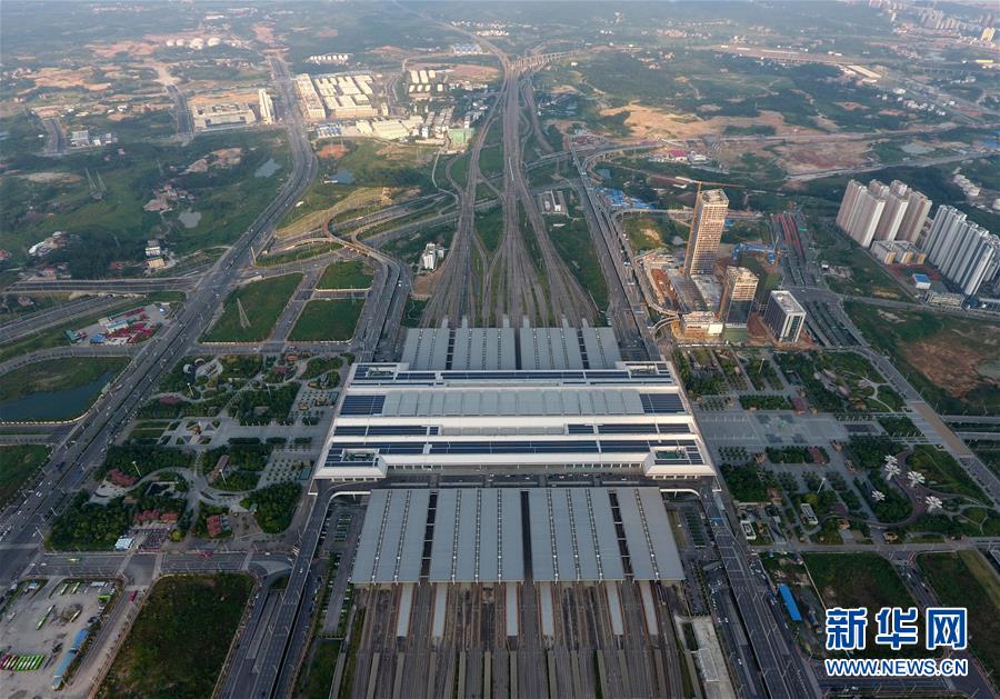 這是“零換乘”立體綜合交通樞紐——廣西南寧東站(9月4日無人機拍攝)。 廣西壯族自治區(qū)成立60年來,鐵路建設發(fā)生翻天覆地的變化。來自中國鐵路南寧局集團有限公司的數(shù)據(jù)顯示,1958年廣西鐵路總里程為1346.3公里,如今廣西鐵路總里程達5191公里。廣西與周邊相鄰省份間實現(xiàn)動車“公交化”開行。此外,北部灣港—重慶班列、東盟海產(chǎn)品冷鏈班列、“百色一號”果蔬專列等的開通和運營,強化了鐵路供給的針對性和有效性。鐵路成為助推廣西經(jīng)濟社會快速發(fā)展的“大動脈”。 新華社記者陸波岸攝