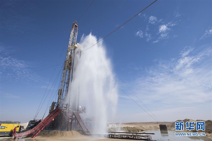 11月21日,在埃及明亞省,地下水從水管里噴涌而出。 2017年,中國(guó)中曼石油公司與阿聯(lián)酋海灣集團(tuán)簽訂合同,為該集團(tuán)在埃及沙漠中的大型農(nóng)業(yè)項(xiàng)目鉆探300口水井。根據(jù)合同,中曼石油將先期完成30口井的試鉆探,剩余水井將以每月7口的速度交付。目前有超過200名工人在鉆井現(xiàn)場(chǎng)作業(yè),大部分是埃及本地人。 新華社記者李碧念攝