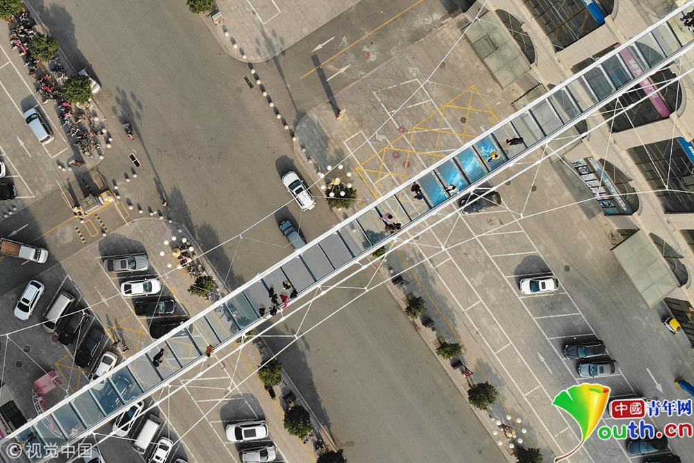 2018年11月28日,石家莊市區(qū)內(nèi)的一座玻璃吊橋在網(wǎng)絡(luò)上走紅,游客們置身于透明的玻璃吊橋上,望著地面川流不息的車(chē)輛,伴隨玻璃破裂的特效聲,不禁膽戰(zhàn)心驚。這座玻璃吊橋位于石家莊南二環(huán)附近,橋體橫跨塔通大街,長(zhǎng)100米,高30米,。橋面由52塊特質(zhì)玻璃構(gòu)成,其中4塊為特效玻璃,游客腳踩上去就會(huì)發(fā)出玻璃破裂的聲音。