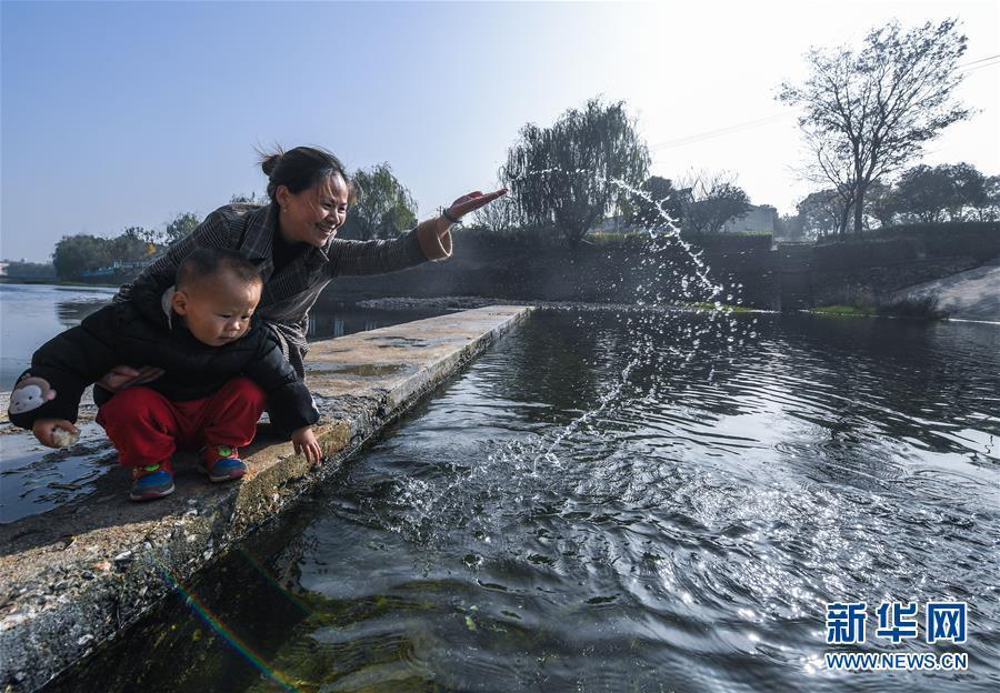 11月28日,月明村的村民在長(zhǎng)豐澗溪水邊嬉水。近年來通過實(shí)施河長(zhǎng)制和水環(huán)境整治,長(zhǎng)興縣夾浦鎮(zhèn)月明村對(duì)長(zhǎng)豐澗進(jìn)行了清淤,對(duì)河兩岸綠化進(jìn)行了補(bǔ)植,修筑堰壩、蓄水引魚,兩岸種植花草,開辟河灘公園,實(shí)現(xiàn)了長(zhǎng)豐澗景美、岸綠、水清、河暢的目標(biāo)。 新華社記者 徐昱 攝