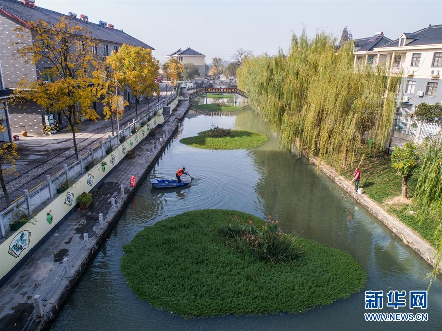 11月28日,林城鎮(zhèn)北湯村河長(zhǎng)黃雙喜(右)在施家邊河打撈水面漂浮物。近年來,北湯村全面推進(jìn)“五水共治”,停止河道內(nèi)的水產(chǎn)養(yǎng)殖,并進(jìn)行河道清淤,整治周邊環(huán)境,另外還結(jié)合北湯生態(tài)園旅游項(xiàng)目,發(fā)展旅游經(jīng)濟(jì),打造水上娛樂設(shè)施?,F(xiàn)在北湯村施家邊河道水質(zhì)清澈,環(huán)境秀美,每年為北湯村吸引游客18萬人次。 新華社記者 徐昱 攝