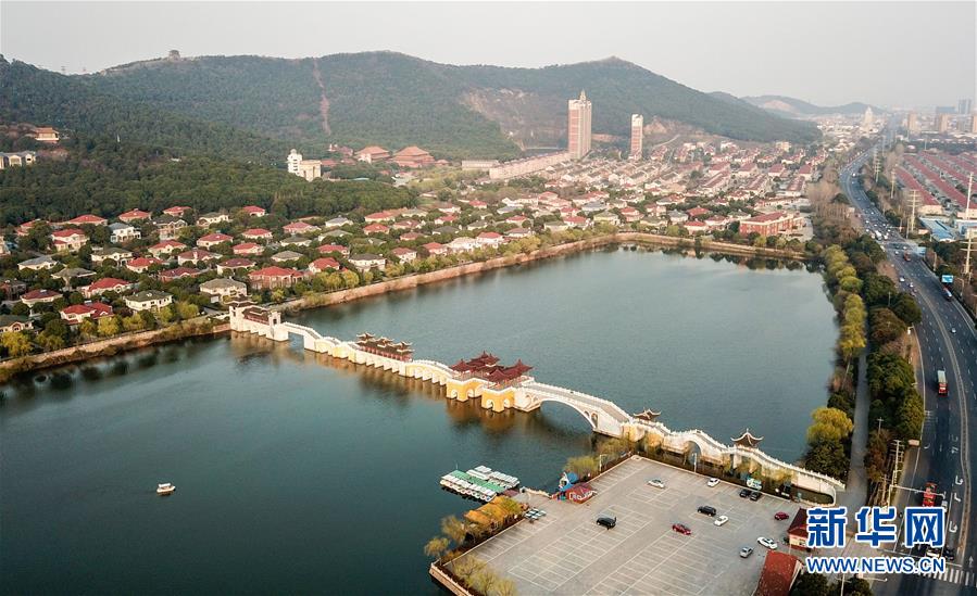 江蘇省江陰市華西村一景(3月13日無(wú)人機(jī)拍攝)。