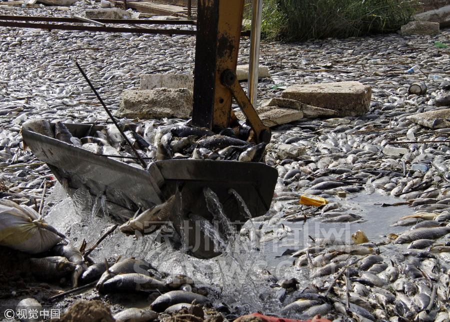伊拉克河流一夜之間漂浮數(shù)萬死魚 密密麻麻擠滿河道
