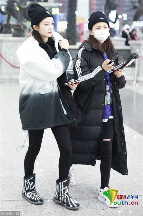 2018年12月3日,北京,“火箭少女101”全體成員現(xiàn)身機(jī)場(chǎng)前往國(guó)外錄制團(tuán)總綜。其中孟美岐戴著墨鏡,一身全黑運(yùn)動(dòng)裝扮,大步流星氣場(chǎng)超強(qiáng),楊蕓晴、yamy、楊超越等成員緊隨其后,大家還一起在機(jī)場(chǎng)玩起自拍,好不歡樂。