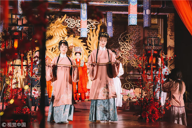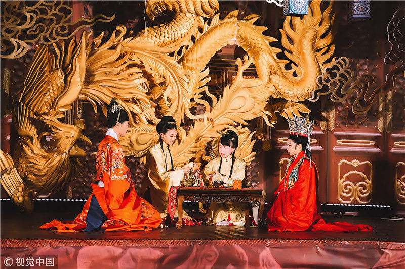 2018年11月18日,浙江嘉興。海寧一位女孩為了籌辦自己的漢婚大禮,囤衣服、囤首飾,準(zhǔn)備整整六年。圖為婚禮現(xiàn)場(chǎng)。周建仕/視覺中國(guó)