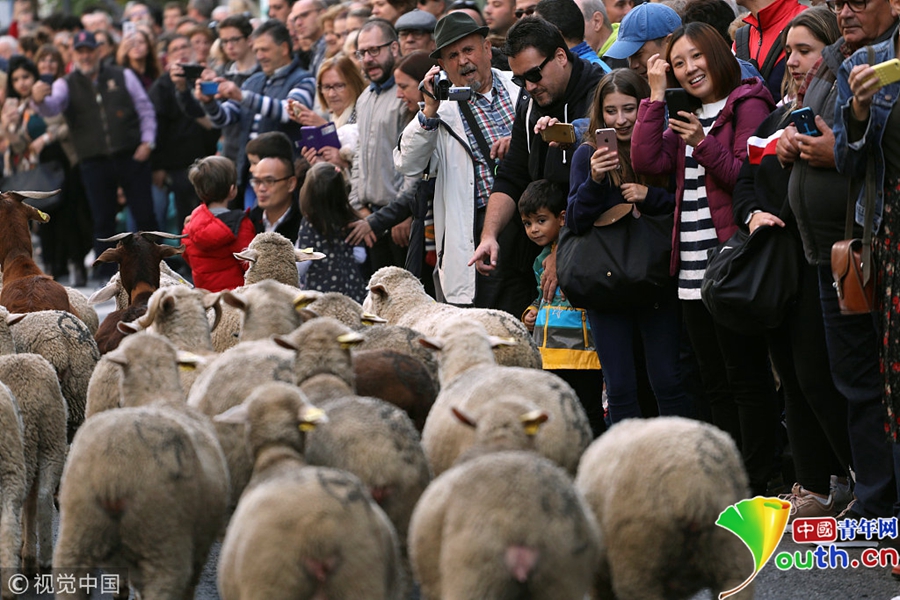 成百上千只綿羊穿越馬德里市街,展示古老的游牧習(xí)俗。