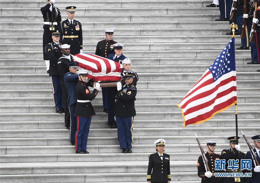 當(dāng)?shù)貢r(shí)間2018年12月3日,美國前總統(tǒng)老布什的靈柩送抵美國國會(huì)大廈,正式的追悼儀式就此開始。