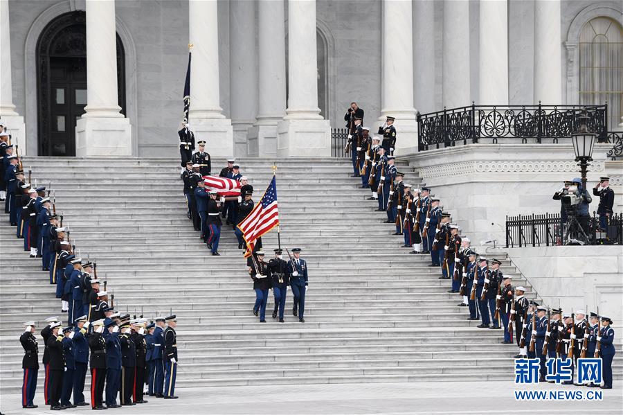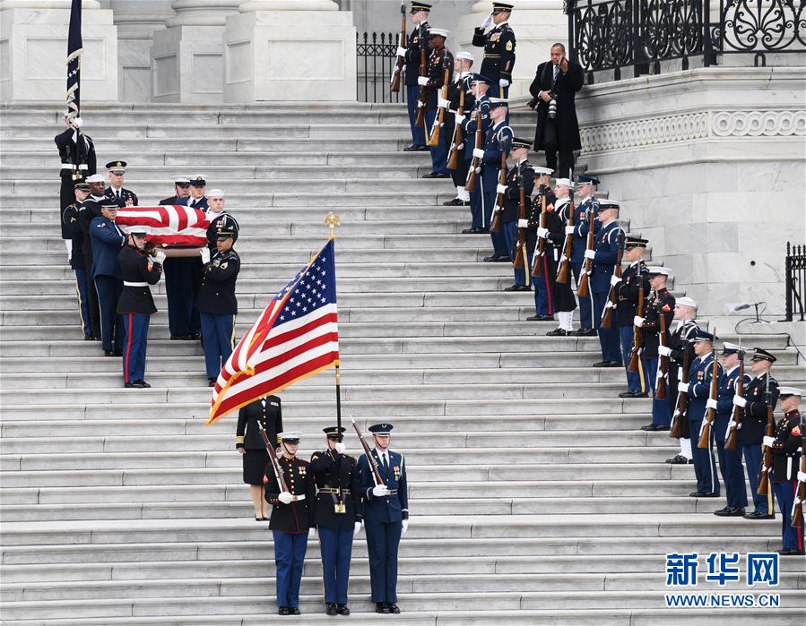 12月3日,在美國首都華盛頓,美國前總統(tǒng)喬治·赫伯特·沃克·布什(老布什)的靈柩抵達(dá)國會(huì)大廈。