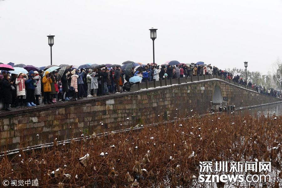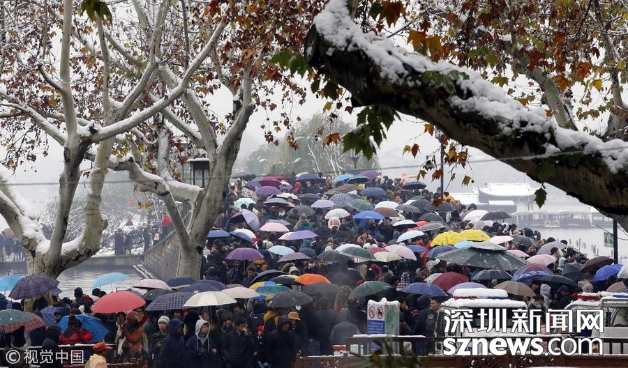 深圳新聞網(wǎng)訊 2018年12月8日,杭州,當(dāng)日市區(qū)普降大雪,市民和游客扎堆涌入西湖景區(qū),拍攝最美雪景照片以及為自己留影。每次杭州一下雪,斷橋便成為眾多游客欣賞雪景、拍攝雪景的地方,大家都想看看“斷橋殘雪”。游客們扎堆涌入斷橋后,人山人海,讓現(xiàn)場堪比春運場景。因為人太多,雪積不起來,斷橋看不到殘雪。