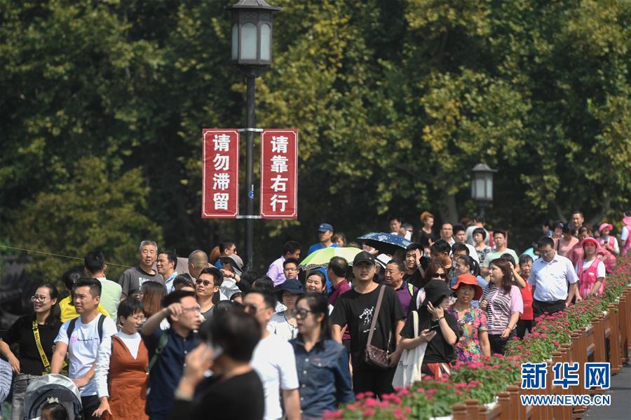 10月7日,杭州西湖風(fēng)景區(qū)的斷橋上游人絡(luò)繹不絕。為維持秩序,景區(qū)采取了雙向游客互相隔離的措施。當(dāng)日是國慶黃金周最后一天,眾多游客來到杭州西湖景區(qū)觀光游覽,熱度不減。據(jù)杭州市旅游委員會公布的數(shù)據(jù)顯示,從10月1日起截至10月7日12時,國慶七天杭州市各景區(qū)(點)接待游客總量達到1776.14萬人次,其中西湖風(fēng)景名勝區(qū)管委會所屬公園景點共接待游客452.2萬人次。新華社記者 黃宗治 攝