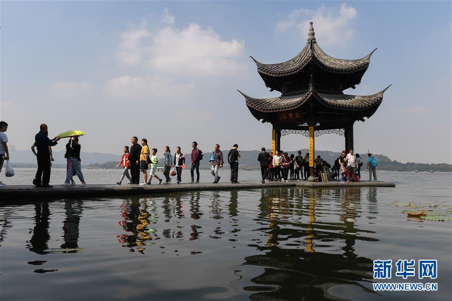 10月7日,游客在杭州西湖風(fēng)景區(qū)集賢亭游覽。當(dāng)日是國慶黃金周最后一天,眾多游客來到杭州西湖景區(qū)觀光游覽,熱度不減。據(jù)杭州市旅游委員會公布的數(shù)據(jù)顯示,從10月1日起截至10月7日12時,國慶七天杭州市各景區(qū)(點)接待游客總量達到1776.14萬人次,其中西湖風(fēng)景名勝區(qū)管委會所屬公園景點共接待游客452.2萬人次。新華社記者 黃宗治 攝
