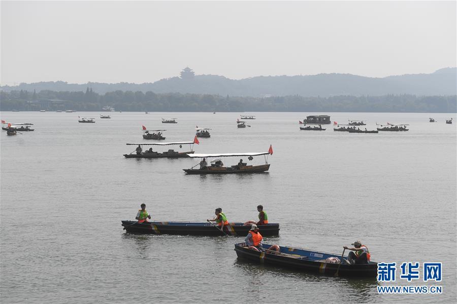 8月14日,游客乘船在西湖游玩(無人機拍攝)?!⌒氯A社記者 翁忻旸 攝