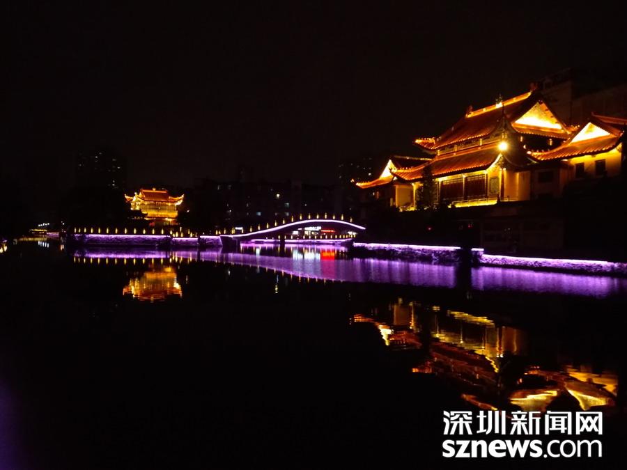 百里塘河穿市而過 ,燈光水光,相映成趣。 吳超攝