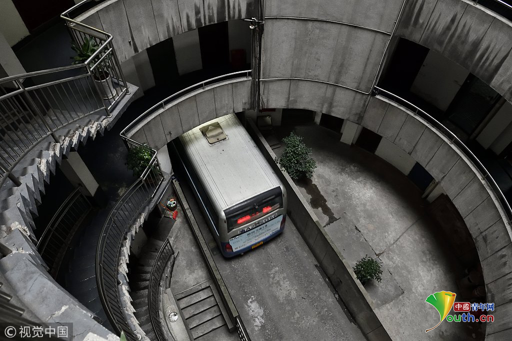 探秘重慶魔幻八層圓筒型轉轉樓 公交車穿其而過