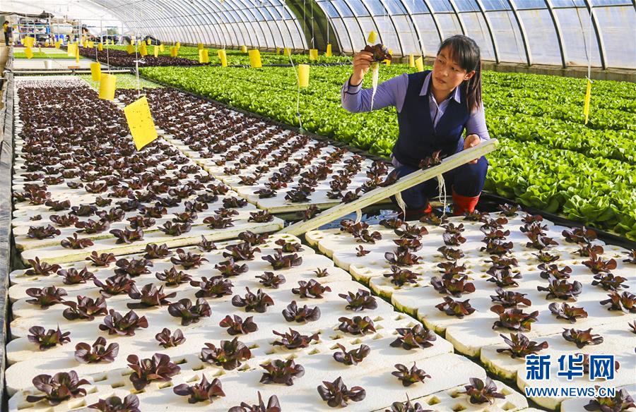 12月11日,河北省永清縣興晟農(nóng)業(yè)科技園區(qū)工人在查看水培蔬菜長勢。 河北省永清縣興晟農(nóng)業(yè)科技園區(qū)打破傳統(tǒng)蔬菜種植模式,引進(jìn)無土水培技術(shù),大力發(fā)展綠色蔬菜種植,不僅縮短蔬菜生長周期,而且具有節(jié)約土地、省時(shí)省工、高產(chǎn)優(yōu)質(zhì)等特點(diǎn)。公司與北京部分大型超市對接,采取訂單式生產(chǎn),目前產(chǎn)銷兩旺。 新華社記者 李曉果 攝