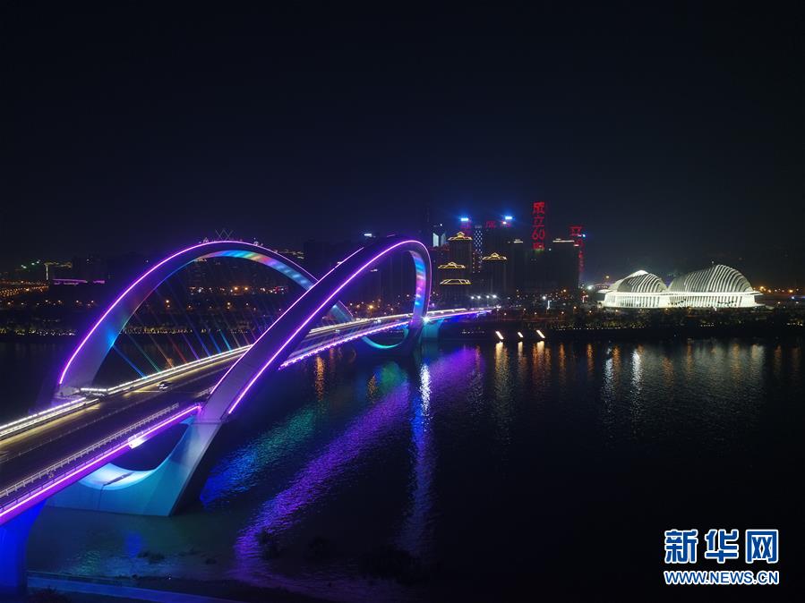 夜幕下的廣西南寧市一景(12月4日無(wú)人機(jī)拍攝)。 新華社記者 黃孝邦 攝