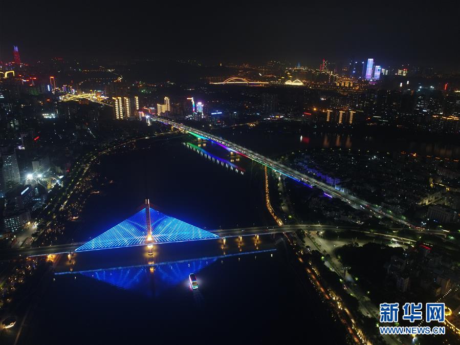 夜幕下的廣西南寧市一景(11月29日無人機(jī)拍攝)。 新華社記者 周華 攝