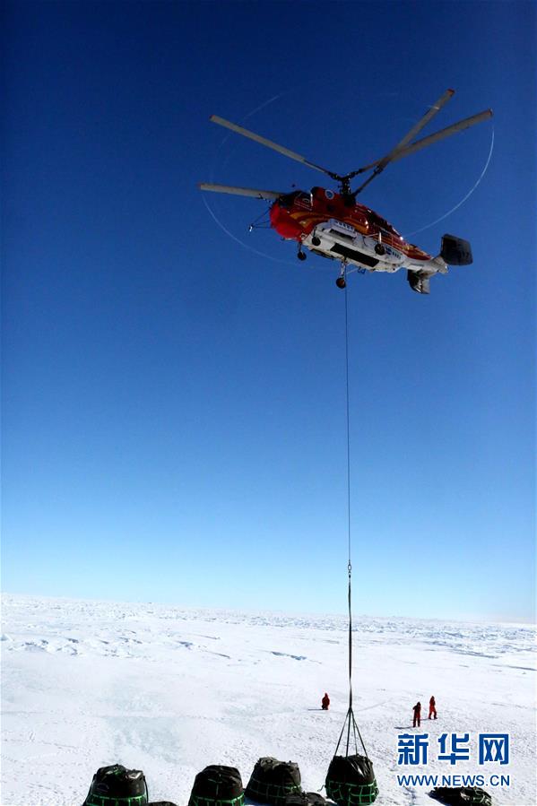 12月14日,直升機(jī)向南極中山站吊運(yùn)物資。