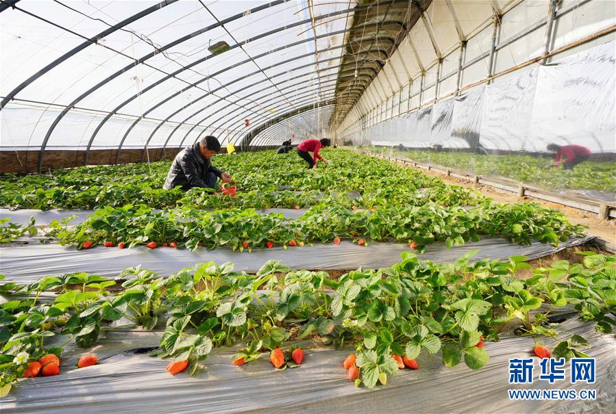 12月15日,游客在唐山市曹妃甸區(qū)一家生態(tài)園的大棚內采摘草莓。 新華社記者 楊世堯 攝