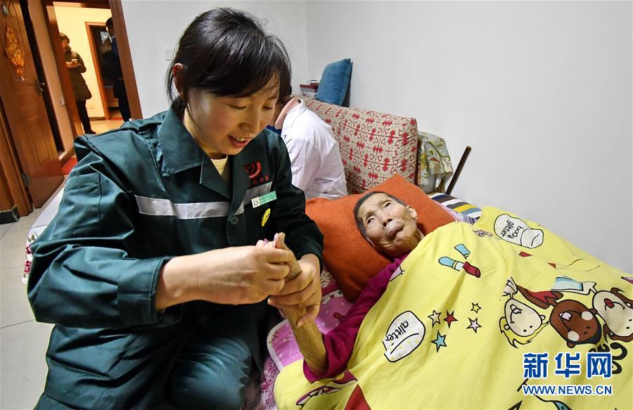 12月17日,豐臺區(qū)太平橋街道溫馨精康園員工在照顧失智失能的王秀珍老人,為她的家人提供短期“喘息服務(wù)”。