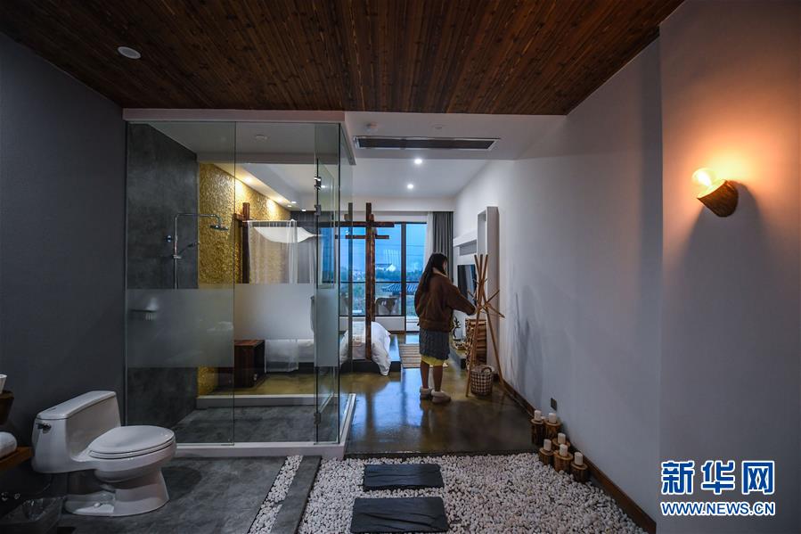 12月19日,章淑貞在民宿“初憶小院”房間內(nèi)整理內(nèi)飾。該民宿是河橋鎮(zhèn)“90后”女孩章淑貞開辦的,民宿融入了大量的現(xiàn)代建筑設計風格,深受年輕人的喜愛。 新華社記者 徐昱 攝