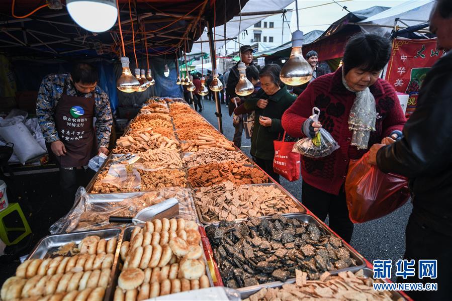 11月19日,人們在廟會現(xiàn)場購買當?shù)孛朗场?新華社記者 徐昱 攝