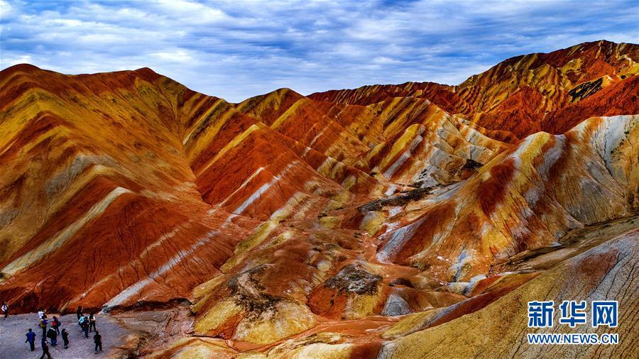 2018年9月5日,游人在張掖丹霞國家地質(zhì)公園游覽。 大地之色,俯仰之間;壯美山河,是我的祖國。2018年,新華社記者操縱無人機(jī)“飛閱”華夏大地,在最美的時節(jié),定格下她的色彩斑斕。 新華社記者 陶明 攝