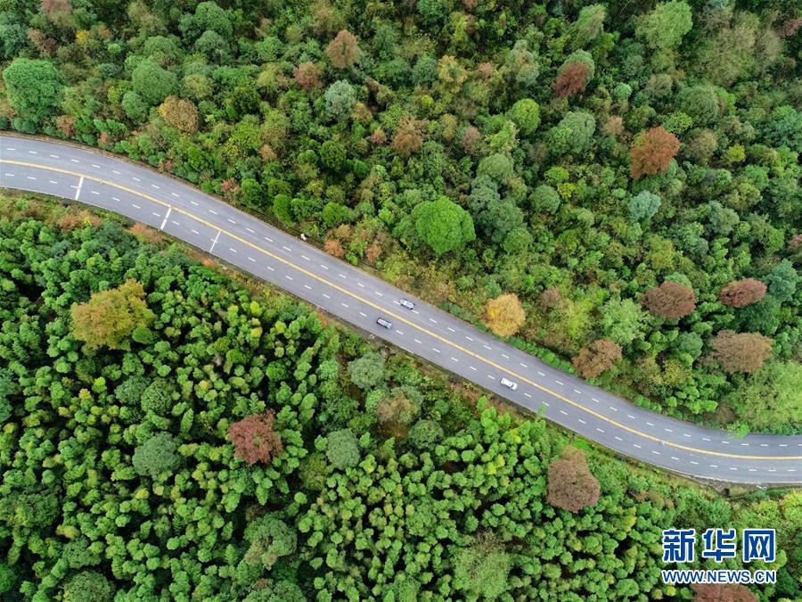 2018年11月21日,車(chē)輛行駛在國(guó)家第一條四車(chē)道盤(pán)山公路泰井高速上。 大地之色,俯仰之間;壯美山河,是我的祖國(guó)。2018年,新華社記者操縱無(wú)人機(jī)“飛閱”華夏大地,在最美的時(shí)節(jié),定格下她的色彩斑斕。 新華社記者 胡晨歡 攝