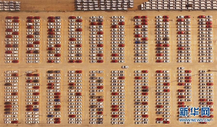2018年8月20日,重慶果園港內停放著等待運輸的汽車。 大地之色,俯仰之間;壯美山河,是我的祖國。2018年,新華社記者操縱無人機“飛閱”華夏大地,在最美的時節(jié),定格下她的色彩斑斕。 新華社記者 王全超 攝