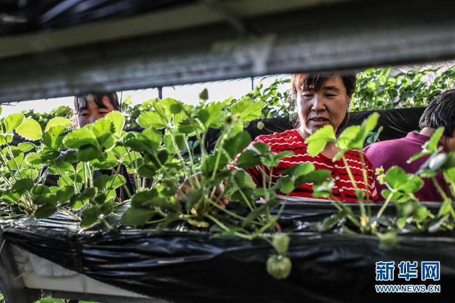 12月19日,農(nóng)戶在大棚里管理草莓。 2017年5月,遼寧省鐵嶺市昌圖縣大四家子鎮(zhèn)方家船口村利用土地確權(quán)成果,由村兩委班子成員領(lǐng)辦創(chuàng)辦了昌圖久晟果木蔬菜種植專業(yè)合作社。到2018年9月,合作社利用產(chǎn)業(yè)扶貧資金、壯大村集體經(jīng)濟(jì)扶持資金、村集體用地和村民入股資金建成了11個(gè)“股份制大棚”,主要種植草莓等作物,產(chǎn)品通過(guò)電商銷往云南、四川、北京、上海等地,預(yù)計(jì)第一期可為265名貧困戶每人分紅860元。 新華社記者潘昱龍攝