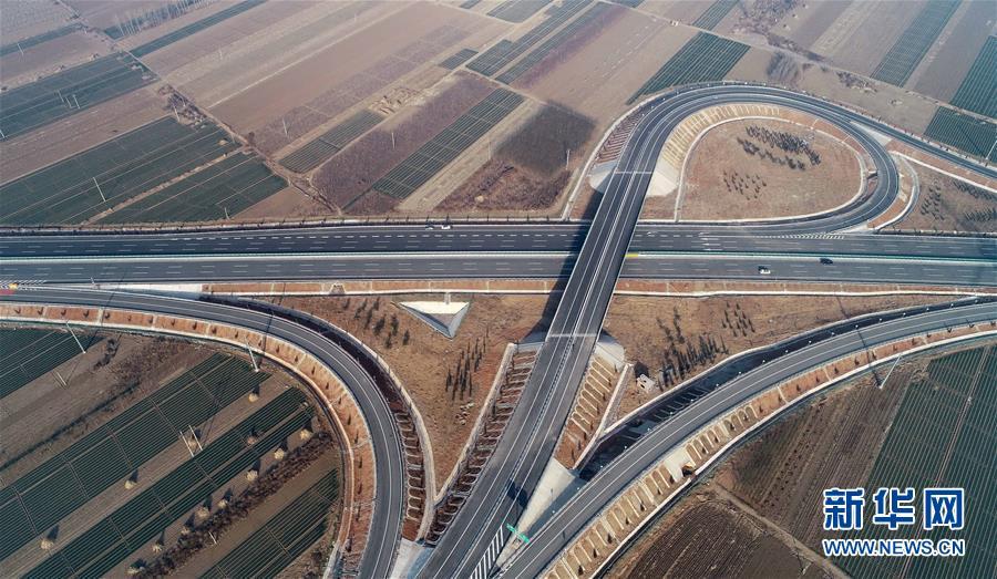 12月16日無(wú)人機(jī)拍攝的京秦高速公路二期工程河北玉田西進(jìn)出口處的立交橋。 新華社記者楊世堯攝