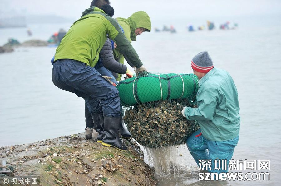 深圳新聞網(wǎng)2018年12月25日訊 二十四節(jié)氣冬至適逢天文大潮,西海岸新區(qū)唐島灣南岸,來自附近十余公里甚至青島市區(qū)的市民來到退潮后的灣底,在齊腰深的海水中挖拾牡蠣(海蠣子)或在沙灘上挖拾蛤蜊。經(jīng)過近2個多小時的辛勤勞作,市民們收獲滿滿返回。