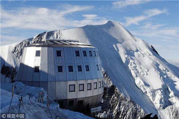 2012年8月6日消息(具體拍攝時間不詳),法國圣熱爾維,一座坐落在阿爾卑斯山脈上海拔3835米的旅館近日落成,旅館目前處于試運行狀態(tài)直到8月底向公眾開放。這座旅館共有120個床位,達到了高環(huán)境質(zhì)量標準。