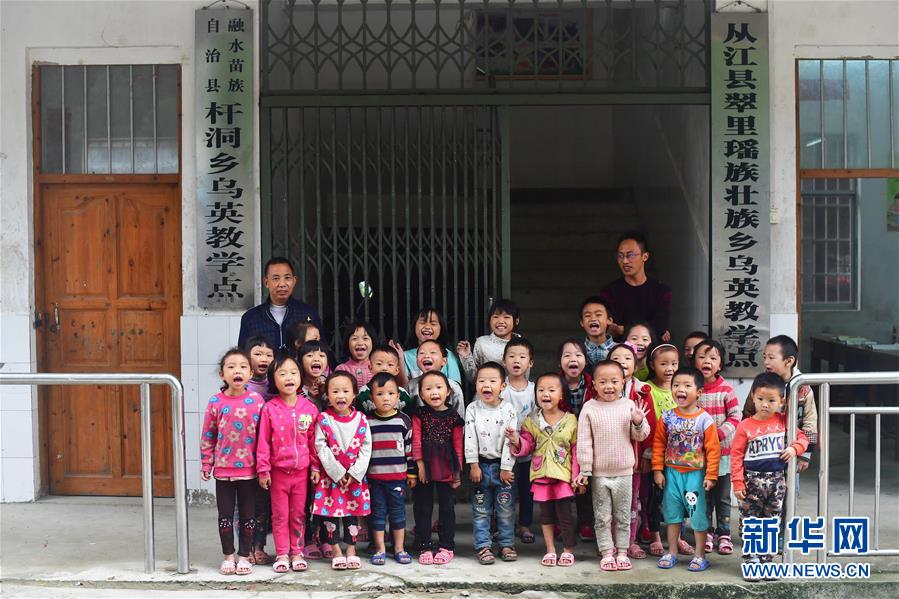 烏英教學點“一??鐑墒^(qū)”,目前有廣西籍學生18名,貴州籍學生9名,廣西貴州籍老師各1名。 烏英苗寨位于黔桂交界的大苗山深處,共有140戶,其中100戶屬廣西柳州市融水苗族自治縣桿洞鄉(xiāng)黨鳩村,40戶屬貴州省從江縣翠里瑤族壯族鄉(xiāng)南岑村。由于地處偏遠,山多地少,經(jīng)濟發(fā)展緩慢,目前整個苗寨還有76戶是貧困戶。 面對艱巨的脫貧任務(wù),當?shù)攸h委政府在努力改善烏英苗寨公共基礎(chǔ)設(shè)施的同時,因地制宜,帶動群眾積極發(fā)展特色產(chǎn)業(yè)。從2017年11月至今的一年多時間,這里發(fā)生了很大改變:10戶村民新建了木樓,120多戶完成“三改”(改廁改廚改圈),1名貧困考生考上大學,1戶購買新汽車,4對新人舉行了婚禮,寬帶網(wǎng)絡(luò)開始進入貧困戶家庭,苗寨修建了新的辦公大樓和戲臺,安裝了4盞太陽能路燈,購買了40多個新蘆笙,水果種植專業(yè)合作社2018年種植的百香果也開始有所收獲,18戶貧困戶進入脫貧公示階段…… 烏英苗寨600多名黔桂苗族群眾,正在用勤勞的手,拔窮根摘窮帽,一起創(chuàng)造美好的明天。