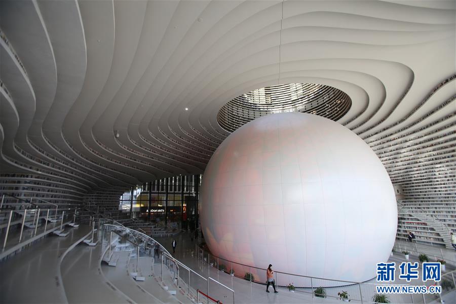 12月27日,讀者參觀天津濱海新區(qū)圖書館中庭。 濱海新區(qū)圖書館位于天津濱海文化中心,2017年10月1日正式開館,設(shè)計立意為“濱海之眼”和“書山有路勤為徑”。圖書館現(xiàn)有藏書60多萬冊,一年多來接待讀者約280萬人次,已成為濱海新區(qū)的文化“新地標”。 新華社記者段卓力攝