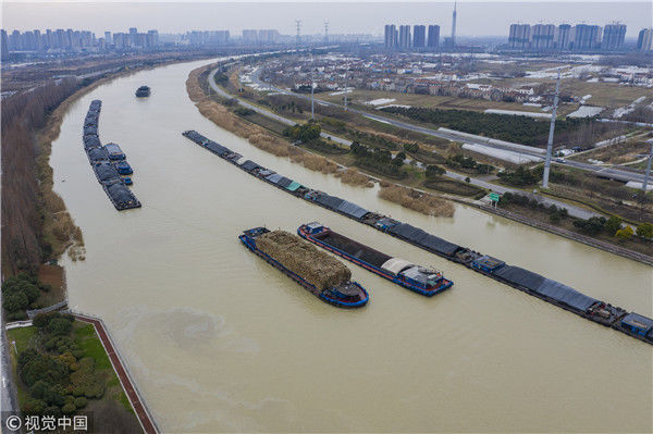 2018年12月27日,江蘇淮安,航拍京杭大運(yùn)河淮安段冬日景色。